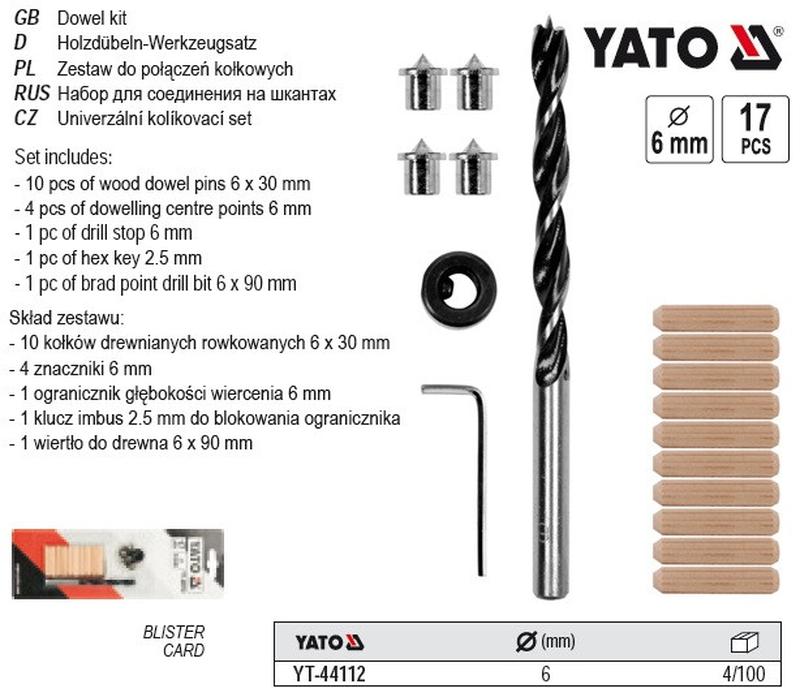 Набір засоби для кілкових сполучень ø=6 мм 17 штук yato польща yt-44112