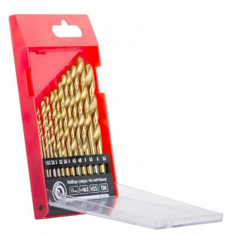 Набор сверл по металлу din338 hss 13шт (1.5-6.5), покрытие ti intertool sd-0013