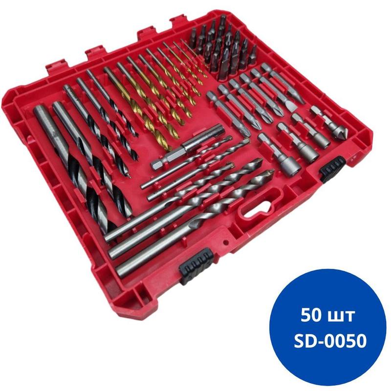 Призначення Універсальний набір містить різні види свердел для роботи з каменем, бетоном, пластиком, металом, деревом, також містить біти, зенківку та магнітний тримач. Використовуються інструменти разом з шурупокрутом або дрилем та підходять для вирішення широкого спектра завдань у монтажі та ремонтно- будівельній справі. Матеріал виготовлення Набір містить: Свердла по металу, виготовлені з якісної HSS сталі з твердістю 60-63 HRC Свердла по дереву, каменю, а також зенківка та магнітний тримач виготовлені з універсальної сталі C45 Викруткові біти та торцеві насадки виготовляються зі зносостійкої та довговічної Cr-V сталі. Кейс Свердла та насадки розміщені у зручному та міцному пластиковому кейсі із замками. Кожен елемент міцно закріплений на своєму посадковому місці, що перешкоджає випаданню інструменту. Дозволяє комфортно переносити та зберігати весь набір. Комплектація Свердла по металу, 9 од.: 1.5, 2, 2.5, 3, 3.5, 4, 4.5, 5, 6 мм; Свердла для дерева, 5 од.: 4, 5, 6, 8, 10 мм; Свердла по кам'яну, 5 од.: 4, 5, 6, 8, 10 мм; Біти 50 мм, 6 од.: PH2, PH3, PZ2, PZ3, SL5, SL6; Біти 25 мм, 20 од.: SL4, SL5, SL6, SL7, PH1, PH2*2, PH3, PZ1, PZ2*2, PZ3, T10, T15, T20, T25, T30, S1, S2, S3; Торцева гайкова насадка 3 од.: 5, 6, 8 мм; Зенківка 8 мм; Магнітний тримач для біт.