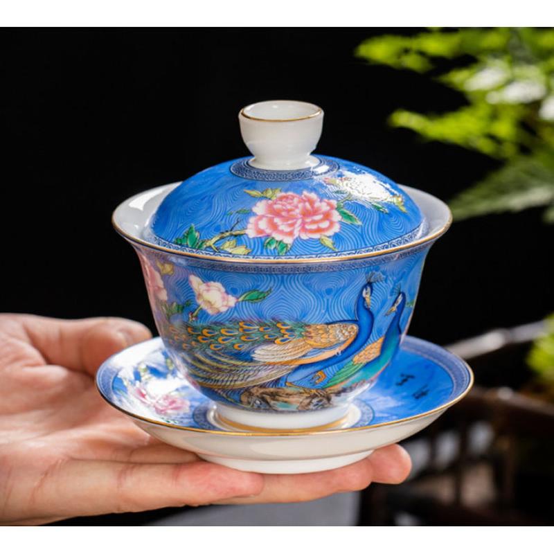 Гайвань павлины синий 200мл для чая, для чайной церемонии