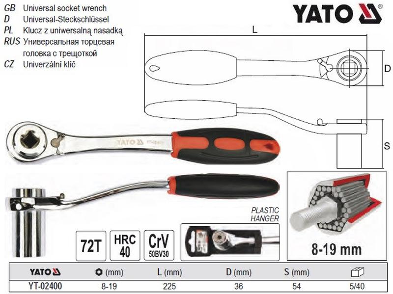 Ключ торцевий з універсальною головкою м8-19 yato польща yt-02400