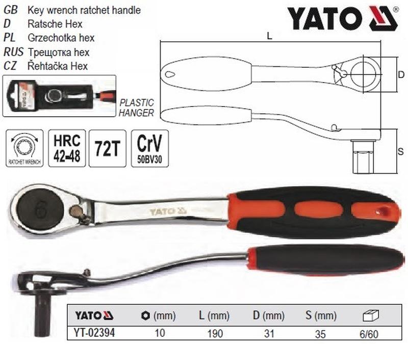 Трещотка ключ yato польша тріщатка шестигранна вигнута hex10 hrc 42-48 yt-02394