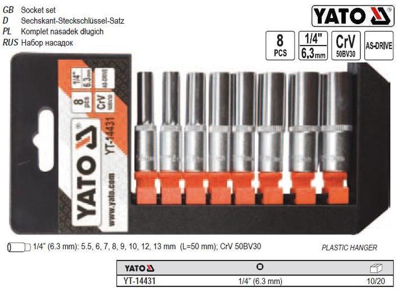 Набір головок торцевх подовжених 1/4" м 5,5-13 l=50 мм 8 штук yt-14431