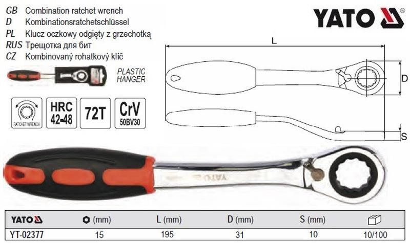 Ключ накидной выгнутый трещотка м15 cr-v yato польща yt-02377