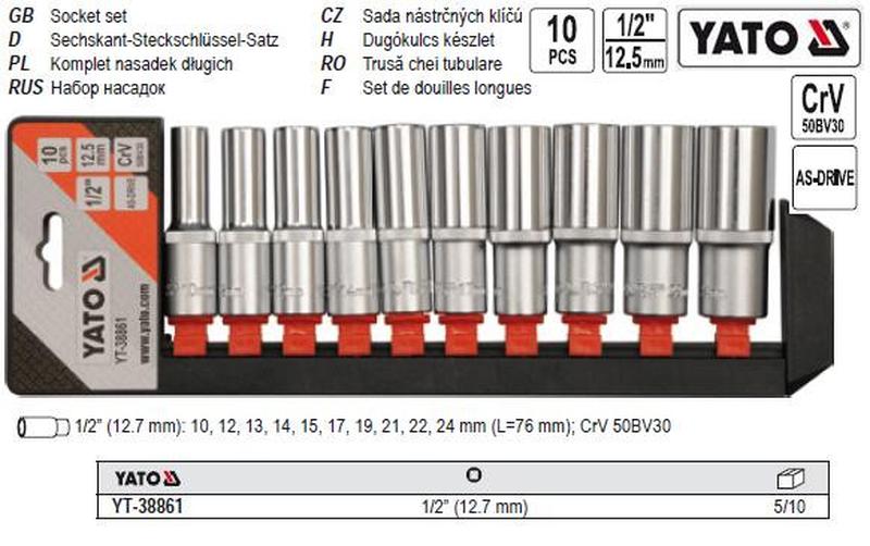 Набір головок торцеві м10-24 l=76 мм 1/2" 10 шт yato-38861