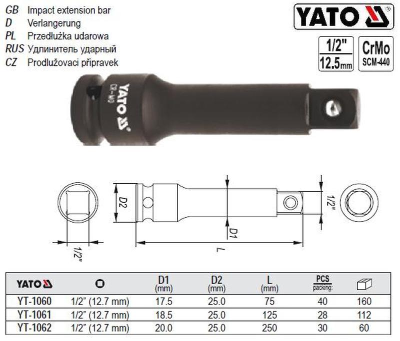 Удлинитель yato польша подовжувач ударный 1/2" l=250 yt-1062