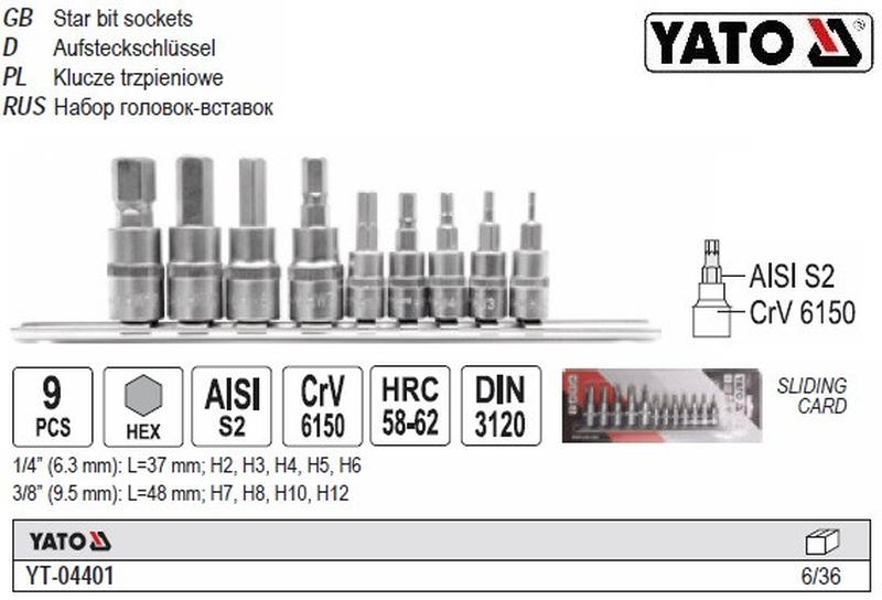 Набор головок yato польща 6 граней 1/2" 3/8" м2-м12 9 штук yt-04401