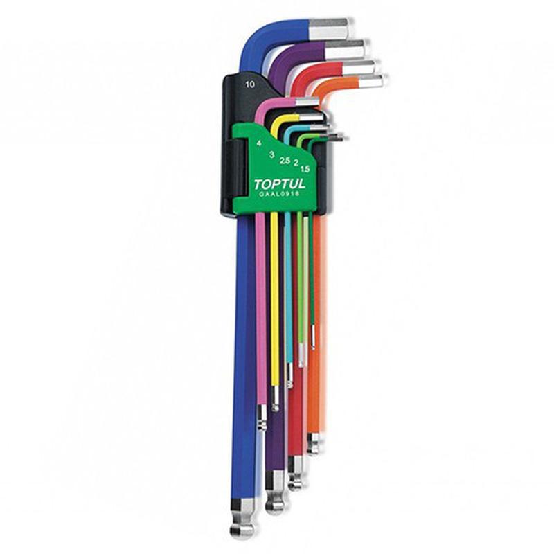 Набір ключів шестигранних із кулею toptul 1,5-10 мм 9 од. різнобарвних gaal0918