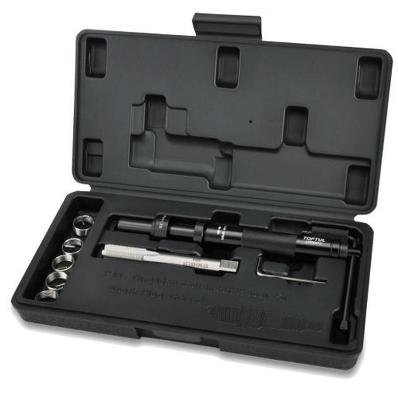 Набір для відновлення різьби свічки TOPTUL 10 од. JGAI1003 ідеальний для ремонту і відновлення пошкодженої різьби свічкових отворів. Ідеально підходить для ремонту і відновлення пошкодженої свічки запалювання. Для найбільш часто використовуваних метричних болтів розміру М14, придатних для машинобудування, ремонту двигунів.
