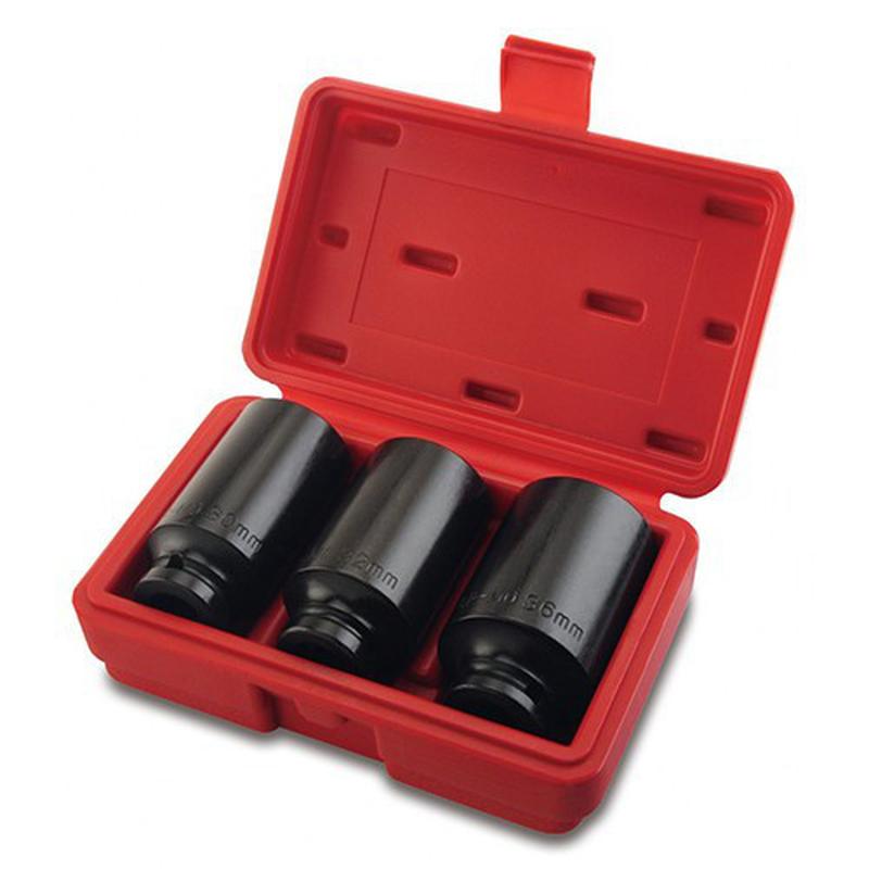 Набір ударних головок для довгих маточинних гайок TOPTUL 1/2" GDAI************** мм) Усиленные ударные 12-гранные длинные головки, профессиональные, изготовлены из закаленной хроммолибденовой стали. Применяются для ступичных гаек, где требуется высокий крутящий момент. Набор содержит три головки с наиболее распространенными размерами гаек ступицы. Черное фосфатное покрытие повышает коррозионную стойкость. Подходит к Audi, VW, Alfa, BMW, Citroen, Fiat, Ford, Mercedes-Benz, Opel, Peugeot, Renault и т.д. Набір складається з: KABJ1630 - Головка торцева ударна довга 1/2 L78mm 30мм 12-гр. | KABJ1632 - Головка торцева ударна довга 1/2 L78mm 32мм 12-гр. | KABJ1636 - Головка торцева ударна довга 1/2 L78mm 36мм 12-гр.