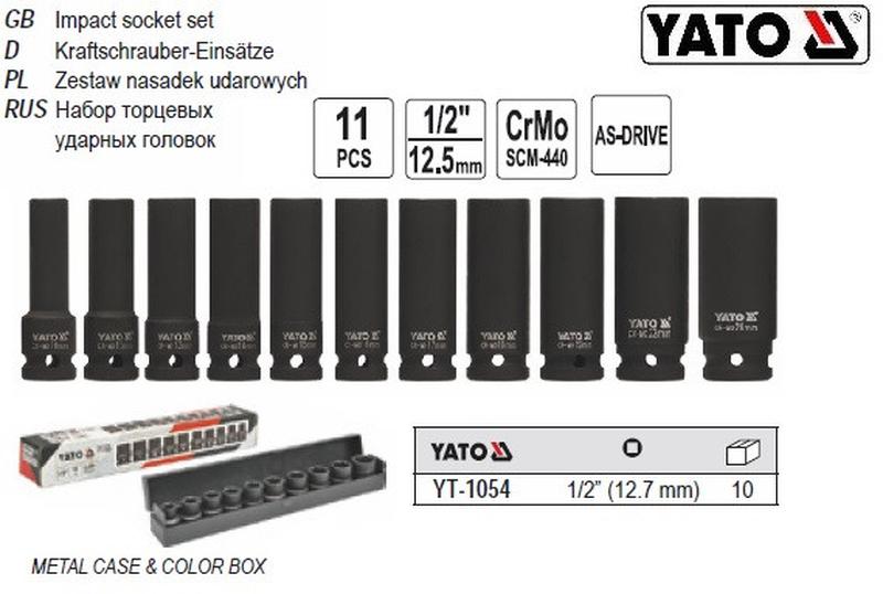 Набір головки торцеві ударні глибокі 1/2" 10-24мм l=78мм 11шт yato-1054
