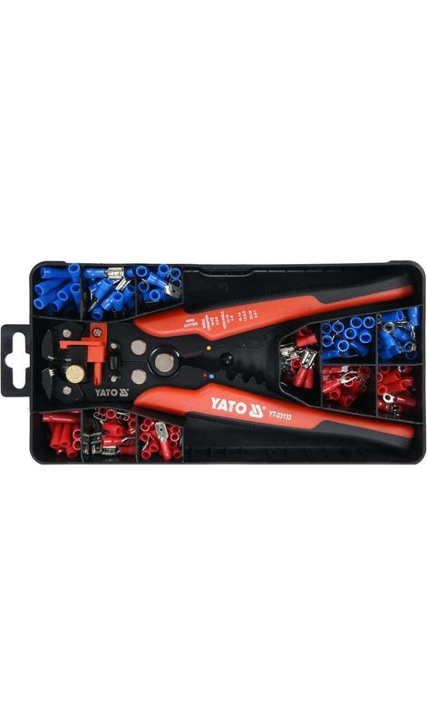 Виробник: Yato Тип інструмента: Знімачі Кілька примірників у наявності КЛЕЧІ ДЛЯ ОБЖИВАННЯ І ЗАВЛЕННЯ ПРОВОДІВ YATO. L = 205 ММ, 0,2-6 ММ2, З НАКОНЕЧНИКАМ, 191 ЕЛЕМ. Набір ізольованих роз'ємів із багатофункціональними плоскогубцями YT-23133. Корпус кліщів виготовлений зі сталі А3, а знімачі ізоляції — з міцної загартованої інструментальної сталі зі сплаву Cr12MoV. Ручки закриваються двокомпонентними пластиковими ковпачками. Більш твердий компонент із поліпропілену щільно прилягає до корпусу, а зовнішня частина з TPR приємна на дотик і має нековзні властивості. Кліщі були захищені від корозії методом окиснення. Конструкція кліщів дає змогу знімати ізоляцію як із кінців, так і з центру дроту. Обмежувач глибини корисний під час прокладання кабелів, наприклад, у роз'ємах або вагонних блоках. - У комплекті 191 елемент. - Довжина інструмента: 205 мм. - Швидкий і автоматичний механізм зняття ізоляції з плоских і круглих кабелів у діапазоні від 0,2 мм2 до 6,0 мм2. - Кінці робочих губок виготовлені з міцної інструментальної сталі Cr12MoV. Особливості: - Можливість різання дроту. - Обтискні з'єднувачі можна обтискати. - Можливість опресування ізольованих роз'ємів. Комплектація: - багатофункціональні кліщі для ізоляції й опресування роз'ємів; - з'єднувачі ізольовані червоні та сині, тип сітка: 20 шт.; - червоний і синій ізольовані роз'єми вилкового типу: по 20 шт.; - червоний і синій ізольовані з'єднувачі тип гільзи: 20 шт.; - червоні та сині ізольовані роз'єми штекерні колодки: по 20 шт.; - червоні та сині ізольовані роз'єми: 10 шт.; - гвоздики утеплені червоні контролерні: 10 шт. Виробник: Yato Країна виробник: Польща Гарантійний термін: 3 міс Довжина: 205.0 мм Призначення: для зняття ізоляції з проводів Прогумована рукоятка: Так Стан: Новий