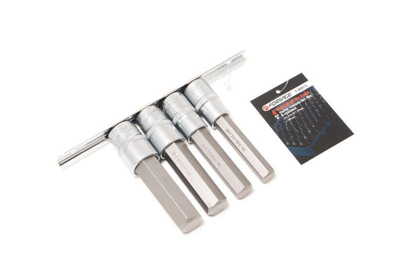 Код товара: 46631, Состав: Набор головок-бит Hex 6-гранных, 4 пр. (Н12,Н14,Н17,Н19мм; L-100мм) 1/2", на планке