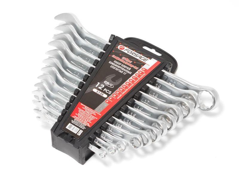 Код товара: 17113, Состав: Набор ключей комбинированных 15грд., 12пр. (6, 8, 10, 12-19, 22мм), в пластиковом держателе Forsage F-5126