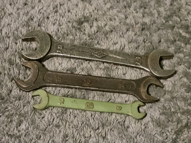 Три ріжкові ключі з СРСР. Той, що 8 на 10, ще й з хромо-ванадію. Усі разом продаються за 75 гривень.