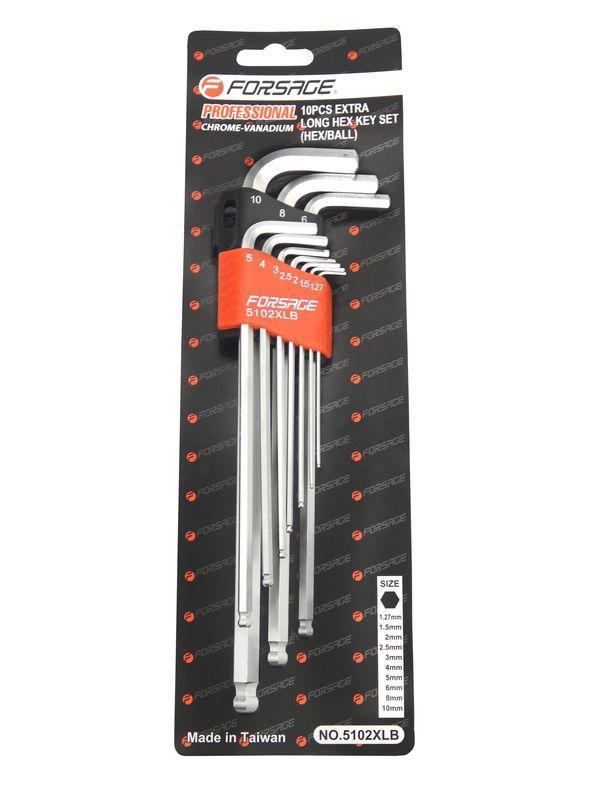 Набір шестигранних ключів Forsage F-5102XLB представляє собою комплект інструменту високої мічності. Комплект має широку сферу застосування за рахунок використання різних розмірів та наявності захисного покриття.Набір- Ключі: 1.27, 1.5, 2, 2.5, 3-6, 8, 10 мм- Пластиковий тримачОсобливості - Тип: HEX з шаром, 6-гранний- Покриття: хромоване- Матеріал: CR-V- Форма: Г-подібна, екстра довга