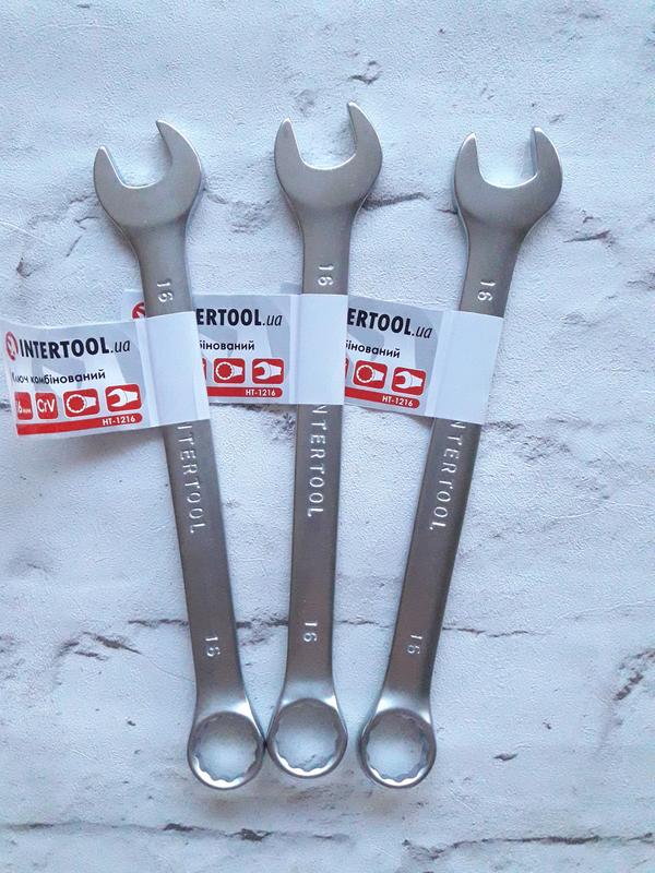 Ключ комбінований Cr-V INTERTOOL HT-1216 стане відмінним помічником в роботі майстра. Це якісне поєднання двох найбільш поширених видів ключів - накидного і ріжкового. Обидві головки мають однаковий розмір - 16 мм. Ключ виготовляється з легованого хромванадієвого сплаву, що забезпечує високі експлуатаційні характеристики. Сатин-хромове покриття надійно захищає інструмент від корозії. Призначення Комбінований ріжково-накидний ключ, розміром 16 мм - це популярний інструмент для виконання різних завдань на відкручування, закручування кріплень. Широко використовується у всіх сферах: від побутового застосування до професійного, завдяки високим експлуатаційним характеристикам. Максимальна продуктивність Ріжкова частина ключа дозволяє отримати зручний доступ до кріплення у важкодоступних місцях. Накидна частина з дванадцятьма гранями збільшує площу прилягання поверхонь та знижує ризик зриву граней гайок та болтів. Зручна форма та вигин руків'я ключа забезпечують оптимальні умови для докладання зусилля, завдяки чому ви легко закрутите, відкрутите кріпильний елемент. Надійна робота Ключ виготовлений з міцної Cr-V сталі, що гарантує виняткову зносостійкість та довговічність. Він витримує навантаження, не деформується та стійкий до корозії. Поверхня ключа матована сатин-хромом для надійного захоплення в роботу навіть забрудненими в мастилі руками.