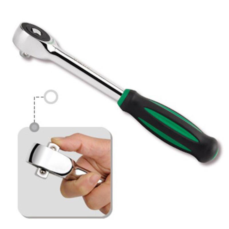 Тріскачка 3/8" з переставним квадратом 60 зубців TOPTUL CJTV1224. Особливості: - Хромова молібденова сталь; - 60-ти зубчастий механізм з жорсткою конструкцією; - Унікальна поворотна ручка на 360°, ідеально підходить для роботи в замкнутих просторах; - Односторонній храповий механізм; - Протиковзка двокомпонентна ручка з пластиковим покриттям PP + TPR.
