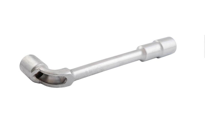 Ключ торцевой с отверстием L-образной формы. Обе головки имеют одинаковый размер (длинный конец имеет 6 граней, а короткий 12). Размер ключа: 17 мм