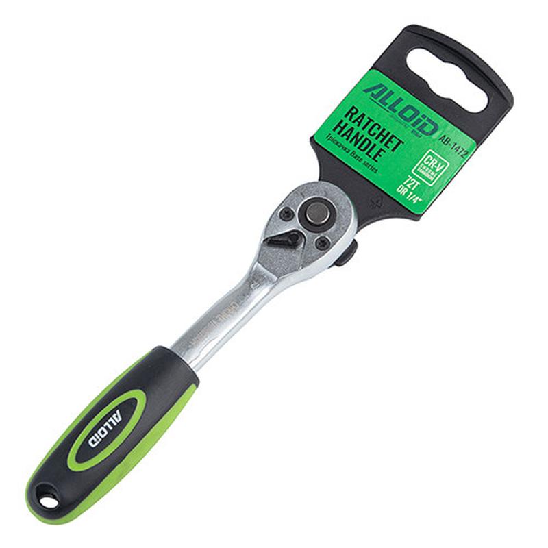 Тріскачка Alloid 1/4" 72 зубці – компактний і надійний інструмент для точних робіт. Завдяки 72-зубцевому механізму забезпечує плавний хід і мінімальний кут повороту (5°), що особливо корисно при роботі у важкодоступних місцях. Ергономічна прогумована рукоятка гарантує зручний хват і комфортну роботу без ковзання. Надійна конструкція з хром-ванадієвої сталі забезпечує довговічність і стійкість до навантажень. Характеристики - Розмір квадрата: 1/4" - Кількість зубців: 72 - Матеріал: хром-ванадієва сталь (Cr-V) - Покриття: антикорозійне - Механізм: реверсний - Рукоятка: прогумована, антиковзка - Мінімальний кут повороту: 5° Переваги ✅, 72-зубцевий механізм – точність і плавний хід ✅, Міцна конструкція – хром-ванадієва сталь для довговічності ✅, Зручний реверс – швидка зміна напрямку обертання ✅, Ергономічна ручка – комфортне утримання, не ковзає ✅, Підходить для професійного та побутового використання Комплектація - Тріскачка Alloid 1/4" 72 зубці