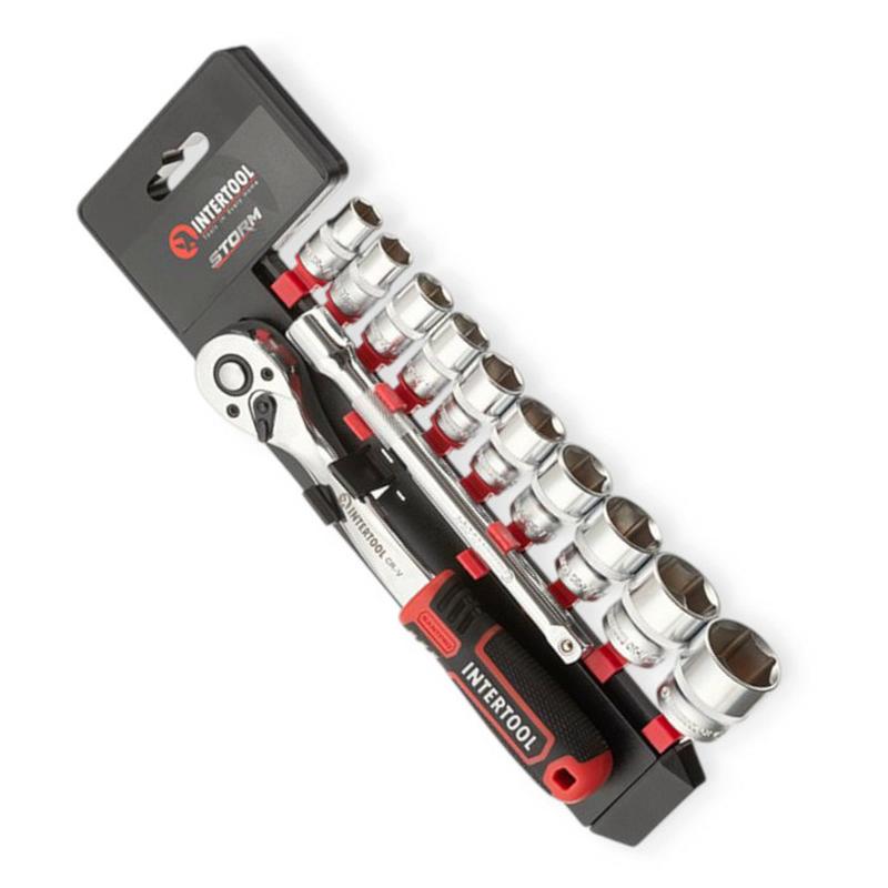 Набор головок 3/8" 12 шт, 10-24 мм с трещ., удленит. (планшет) Storm INTERTOOL
