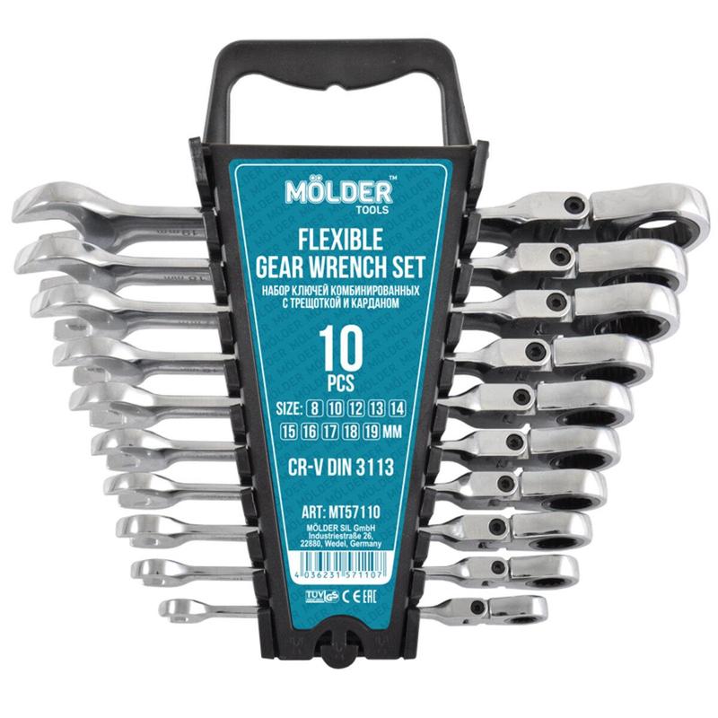 Набор ключей molder cr-v с трещоткой и карданом 10шт комбинированные для авто 8-19мм ключи...