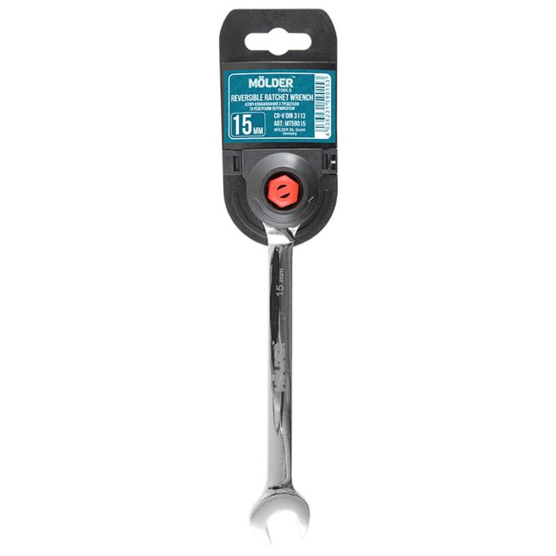 Ключ комбинированный molder cr-v 15мм с трещоткой и реверсом инструмент для ремонта автомо...