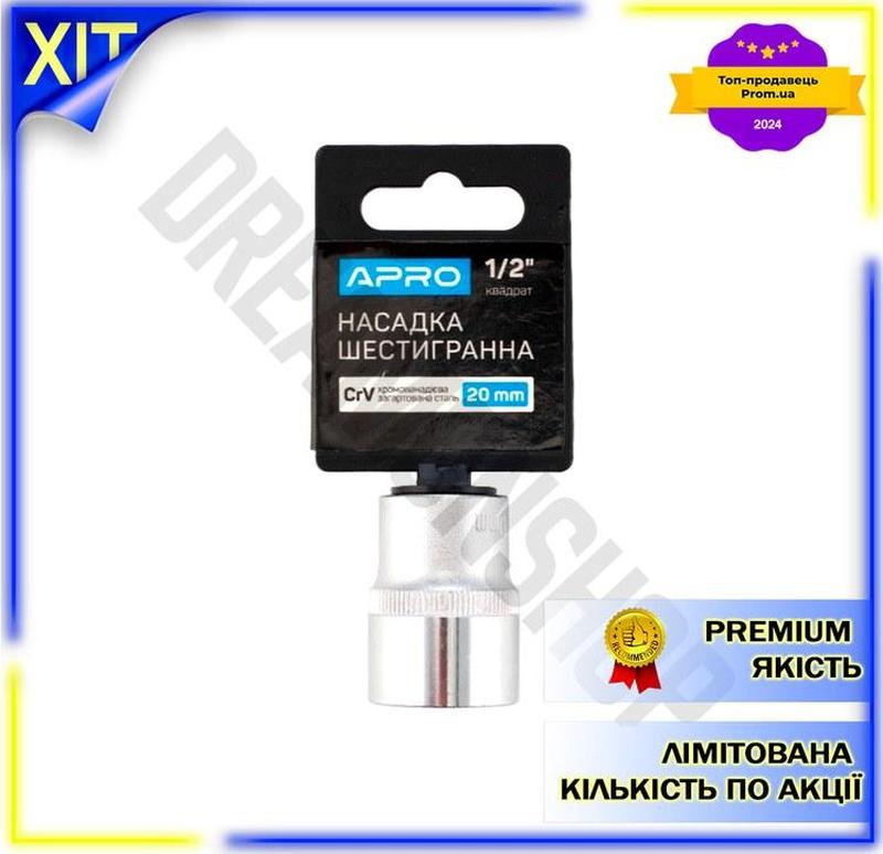 Dm головка шестигранна apro специфікація 2.2 20 мм 1/2 дюйма для ключа торцева головка з х...