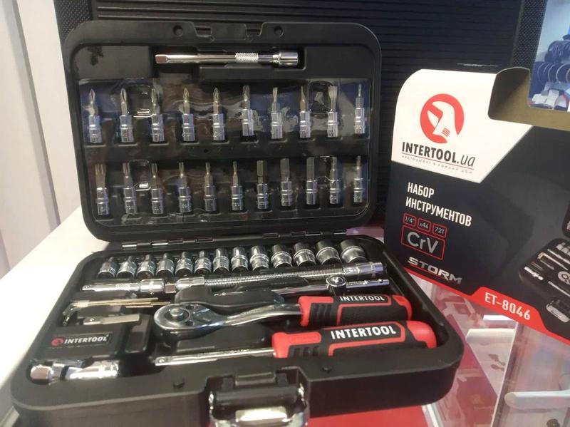 Дорожный набор инструментов в кейсе 46ед, Набор ключей комбинированных универсальный, NST Наборы инструментов INTERTOOL STORM - это новое слово в поддержку качества и многофункциональности! Благодаря своей практичности идеально подходят для автолюбителей и домашних мастеров. Широкий выбор инструментов позволяет справиться почти с любым видом крепежа, что очень выручает при внезапных поломках в дороге и во время ремонтных работ в гараже. Функционал Комплектация набора с приводом 1/4" понадобится для выполнения подавляющего большинства работ, связанных с ремонтом оборудования, авто-, мото-, велотехники, а также прочих работ в быту и в гараже каждого домашнего мастера. В комплекте самые популярные размеры торцевых головок, а также кардан, вороток и гибкий удлинитель для откручивания и закручивания крепежей в труднодоступных местах. Различные типы головок с насадками пригодятся для работы со шлицами, которые часто используют в мебельной промышленности, в приборостроении и пр. Удобная и надежная трещотка Механизм трещотки на 72 зуба изготовлен в Тайване. Отличается плавным ходом храпового механизма, а также прочностью и износостойкостью. Быстрый сброс головок и наличие реверса упростят и во множество раз ускорят работу мастера. Трещотка имеет изогнутую рукоятку для работы в труднодоступных местах. Ручка с трехкомпонентным покрытием из TPR резины для максимального хвата, не скользит и не выпадает из рук. Головки туго сидят на посадочном квадрате трещотки 1/4", не спадают и плотно прилегают к поверхности крепежа. На каждой головке нанесены насечки для предотвращения скольжения в руках. Долговечность и износостойкость Все инструменты изготовлены из прочной и выносливой Cr-V стали. Головки и трещотка из Cr-V 50BV30, отличаются длительным сроком службы, имеют запас прочности и устойчивы к нагрузкам. Двухслойное никелевое покрытие обеспечивает антикоррозионные свойства инструментов. Каждая бита выполнена из стали Cr-V 6150 с отличными показателями твердости и упругости в своем сегменте. Противоударный кейс Все инструменты упакованы в компактный кейс с надежным металлическим замком. Комплектующие прочно зафиксированы на своих посадочных местах и не выпадают при транспортировке. Благодаря небольшим габаритам кейса (220*160*60 мм) набор поместится в любой кладовке, бардачке или на полке в гараже. Современный яркий дизайн точно не оставит никого равнодушным! Комплектация * * * Трещоточная рукоятка 1/4", 72 зуба, реверсионная; Головка шестигранная торцевая 1/4", 13 шт.: 4, 4.5, 5, 5.5, 6, 7, 8, 9, 10, 11, 12, 13, 14 мм; Удлинитель 1/4" 50, 100 мм; Гибкий удлинитель 150 мм; Вороток 115 мм; Кардан 1/4"; Адаптер для шуруповерта 1/4"; Держатель 1/4" для головок и бит 150 мм. Головки-биты: TORX 6 шт.: T10, T15, T20, T25, T30, Т40; HEX 6 шт.: 3, 4, 5, 6, 7, 8 мм; PH 3 шт.: PH1, PH2, PH3; PZ 3 шт.: PZ1, PZ2, PZ3; SL 3 шт.: SL4, SL5.5, SL7. Набор Г-образных шестигранных ключей 4 шт.: 1.27, 1.5, 2, 2.5 мм.