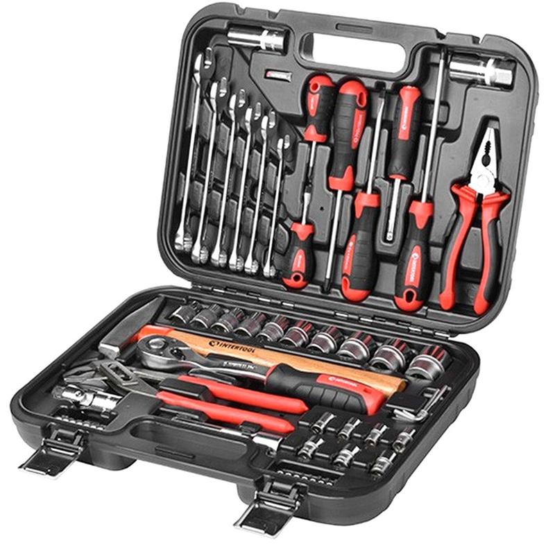Набор ключей комбинированных универсальный, Дорожный набор инструментов в кейсе 56ед, NST - Набор содержит максимум необходимых инструментов как для домашнего использования, так и для автомастерской - Подходит для работы с различными узлами и механизмами автомобиля и техники - Двухслойное покрытие никелем повышает прочность, выносливость и антикоррозионную стойкость инструментов - Высококачественный и долговечный инструмент, изготовлен из Cr-V стали, лучшей в своем сегменте - Рукоятки инструментов трехслойные прорезиненные, для лучшей фиксации в руках - Противоударный кейс с металлическими замками - Удобные и надежные трещотки на 72 зуба с тайваньским механизмом - Быстрый подбор инструмента, ячейки с маркировкой размера и надежной фиксацией Комплектация * * * Трещоточная рукоятка 1/2", 72 зуба, реверсионная; Головка шестигранная торцевая 1/2", 10 шт.: 10, 11, 12, 13, 15, 17, 19, 22, 24, 27 мм; Головка свечная 1/2", 2 шт.: 16, 21 мм; Удлинитель 1/2" 125 мм; Кардан 1/2". Головка шестигранная торцевая 1/4", 6 шт.: 8, 9, 10, 11, 12, 13 мм; Держатель 1/4" для головок и бит 150 мм; Переходник для бит 1/4". Биты: TORX 7 шт.: T10, T15, T20, T25, T27, T30, Т40; PH 3 шт.: PH1, PH2, PH3; SL 4 шт.: SL3, SL4, SL5, SL6. Отвертка PH1*38 мм; Отвертка PH2*100 мм; Отвертка PZ2*150 мм; Отвертка SL5*38 мм; Отвертка SL6*100 мм. Набор комбинированных ключей, 6 шт.: 10, 12, 13, 14, 15, 17 мм; Набор Г-образных шестигранных ключей, 4 шт.: 1,5 мм, 2 мм, 3 мм, 4 мм. Клещи сантехнические 250 мм; Плоскогубцы 180 мм; Молоток 400 гр.