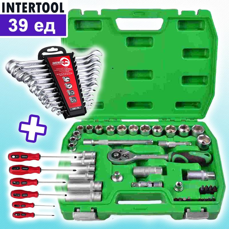 Набор инструмента для авто комбинированный 39ед (3/8) + набор ключей 12шт + набор отверток...