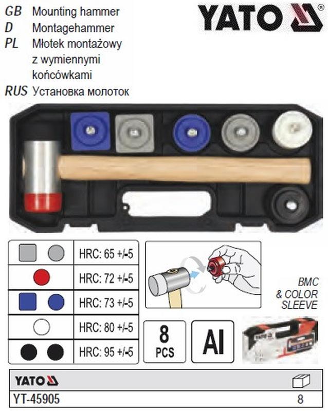Набір молоток бляхаря круглі ø=42.5 мм квадратні 43х43 мм насадки 8 штук yato польща yt-45...