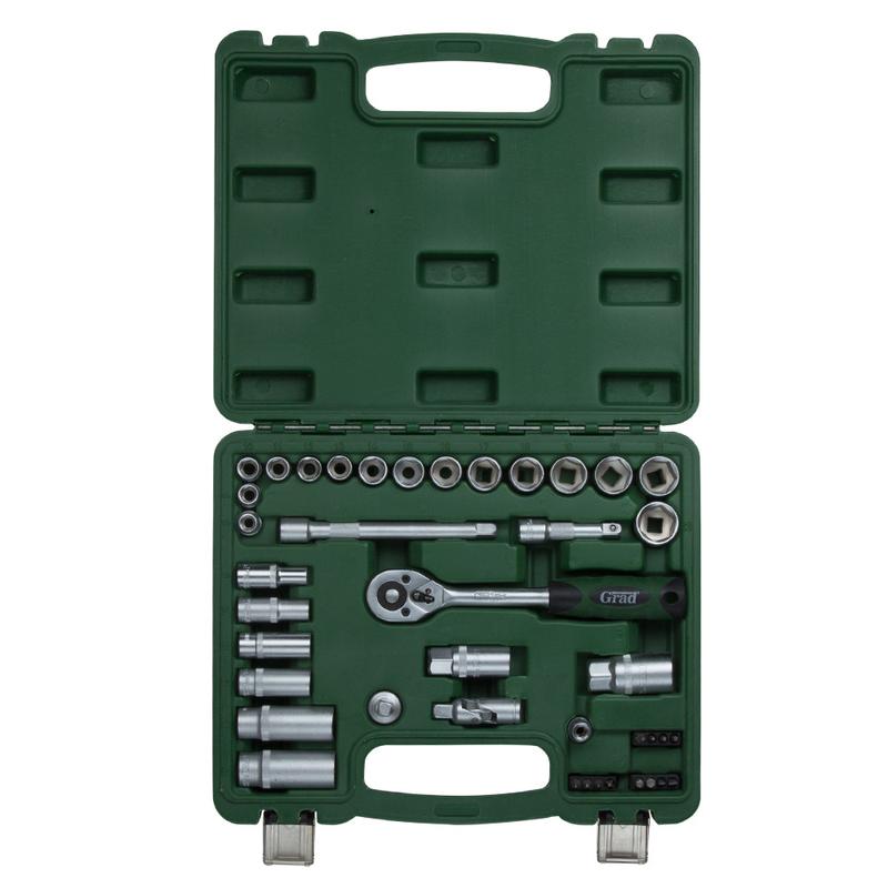 Набор насадок торцевых и бит 3/8" 39шт (6004105) предназначен для работы с резьбовыми соединениями при ремонте и обслуживании автомобилей. Инструменты изготовлены из хромванадиевой стали. Поставляются в компактном пластмассовом футляре. Комплектация: ⅜" - Насадки (14 шт.): 8, 9, 10, 11, 12, 13, 14, 15, 16, 17, 18, 19, 21, 22 мм; - Насадки глубокие (8 шт.): 8, 10, 12, 13, 17, 19 мм; - Рукоятка с храповым механизмом и реверсом (45 зубьев); - Удлинители: 75 мм, 125 мм; - Переходник: ½"-⅜" с отверстием для воротка; - Битодержатель; - Шарнир карданный; - Насадки свечные: 16 мм, 21 мм. Биты: - SL 4, 5.5; - PZ 1, 2; - PH1, 2; - HEX 5, 6; - T8, Т10, Т15, Т20. Купить набор насадок Вы можете, оформив заказ в нашем интернет-магазине с помощью простой формы, доставка осуществляется по всей Украине. Если у Вас возникли вопросы, Вы можете позвонить по указанным номерам телефонов или заказать обратный звонок. Специалисты нашего интернет-магазина предоставят Вам подробные консультации и помогут сделать правильный выбор.