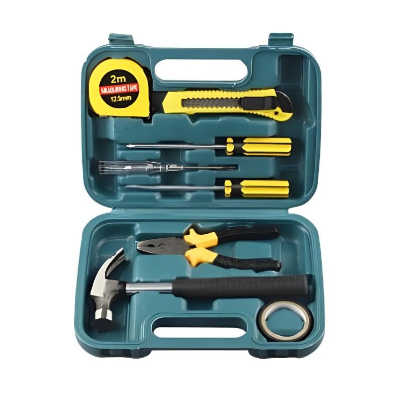 Опис Набір інструментів зроблений спеціально для ремонту та будівництва та стане незамінною річчю в будинку кожного господаря. Набір упакований у міцний кейс, виготовлений із жорсткого протиударного пластику. Його компактність і невелика вага дають змогу взяти його із собою в дорогу, покласти в багажник автомобіля, не переживаючи, що він займе багато місця. Забити цвях або закрутити болт? Без проблем! Адже до набору входить багато потрібних речей. Комплектація набору: 1 шт. — Ізострічка (5 м) 1 шт. — Індикаторна викрутка з цифровим дисплеєм 1 шт. — Плоскогубці 1 шт. — Ніж канцелярський 1 шт. — Молоток столярний 1 шт. — Рулетка (2 м) 1 шт. — Викрутка хрестова 1 шт. — Викрутка плоска 1 шт. -- Пластикова валізка
