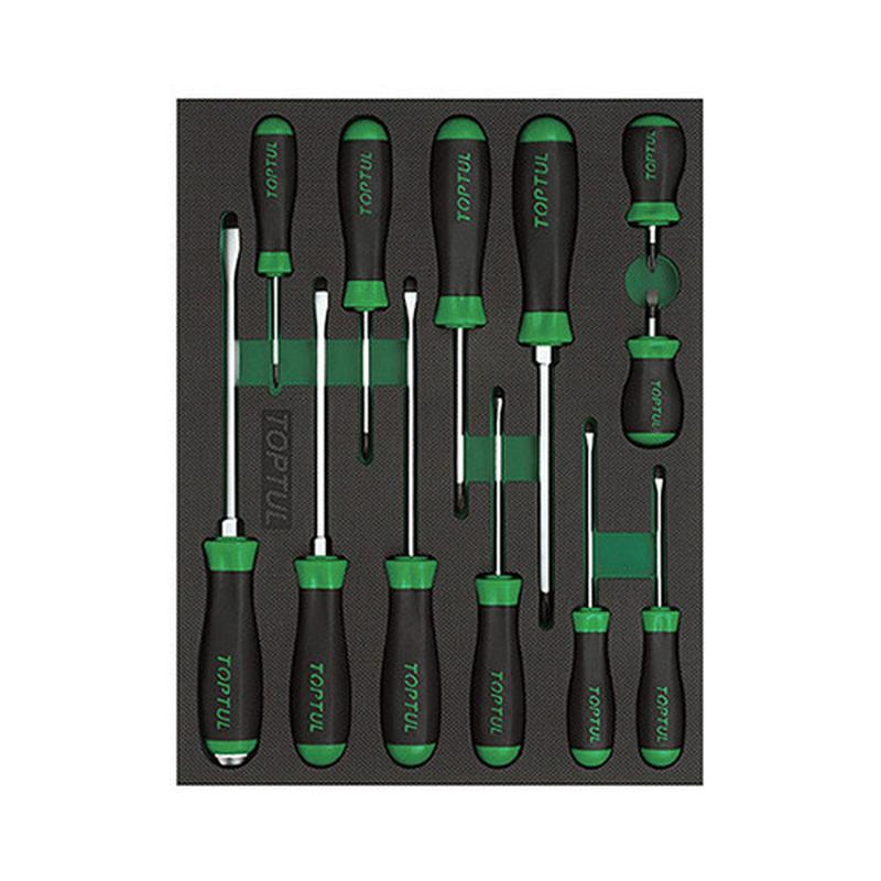 Набір викруток 12ед. (в ложементі) TOPTUL GVB1202. Всі нові набори інструментів TOPTUL високої якості EPE в даний час розроблені з 4 взаємозамінними розмірами вставок (A, B, C, D), які дозволяють користувачам змішувати і поєднувати особисто найбільш підходящий і необхідний інструмент у кожному ящику.