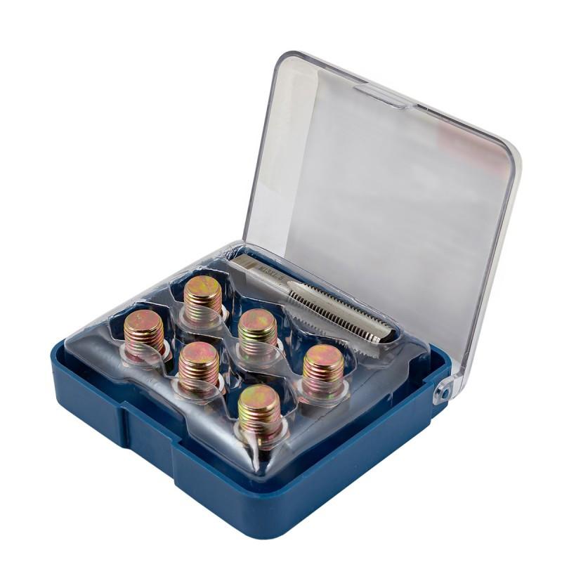 Для використання на колодязях M12, де різь зірвана або зношена. У комплекті: 1 позначник M13 x 1,5, 6 зливних пробок із шайбами.Всяг часу використовуйте різь на один розмір більше, щоб повторно нарізати різь. Постачається з позначником збільшеного розміру.