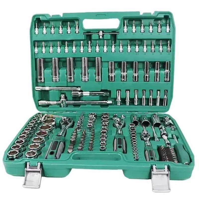 Універсальний набір інструментів у кейсі 172 предмета Набір насадок торцевих та біти ¼" ⅜" ½" 172 шт (з кейсом) призначений для роботи з різьбовими з'єднаннями при ремонті та обслуговуванні автомобілів. Інструменти виготовлені з хромованадієвої сталі та мають матове покриття. Поставляються в удар Набір - чудовий помічник для ремонтних і столярно-слюсарних робіт. Такий набір ідеально підходить як для професійного, так і для побутового використання. металевими петлями Насадки та інструменти з хромованадієвої сталі Антикорозійна обробка. ; Насадки глибокі (7 шт.): 4, 5, 6, 7, 8, 9, 10 мм; зуба); Подовжувачі (2 шт.): 50, 100 мм; Вороток Т-подібний; Вороток викрутковий. Біти у тримачі: PZ 1, 2, 3; PH 1, 2, 3; HEX 2, 3, 4, 5, 6; TORX T10, T15, T20, T25, T27, T30, T40; TORX-proof 8, 9, 10, 15, 20, 25, 27, 30; FD 4, 5.5, 7. 3/8” Насадки (10 шт.): 10, 11, 12, 13, 14, 15, 16, 17, 18, 19 мм; Глибокі насадки (6 шт.): 10, 11, 12, 13, 14, 15 мм; Насадки TORX (6шт): E10, E11, E12, E14, E16, E18; Рукоятка з храповим механізмом та реверсом (72 зуби); Насадка свічкова 21 мм; Подовжувач 150 мм; Шарнір карданний; Перехідник для біт 3/8" - 5/16". 1/2" Насадки (17 шт.): 10, 11, 12, 13, 14, 15, 16, 17, 18, 19, 20, 21, 22, 24, 27, 30, 32 мм; Насадки глибокі (5 шт.): 16, 17, 18, 19, 22 мм; Насадки TORX (2 шт.): E20, E24; ; Подовжувачі (2 шт.): 125, 250 мм; Шарнір карданний; Перехідник для біт 1/2" - 5/16"; Ключі шестигранні: 1.0, 1.5, 2, 2.5, 3, 4, 5 мм. Біти: PZ 3, 4; PH 3, 4; HEX 7, 8, 10, 12, 14; TORX T40, T45, T50, T55, T60, T70; ORX-proof 40, 45, 50, 55, 60, 70; FD 8, 10, 12. Біти у тримачі: SL 4, 5.5, 7; HEX 3, 4, 5; TORX T8, T9, T10, T15, T20, T25, T30; TORX-proof 8, 9, 10, 15, 20, 25, 30.