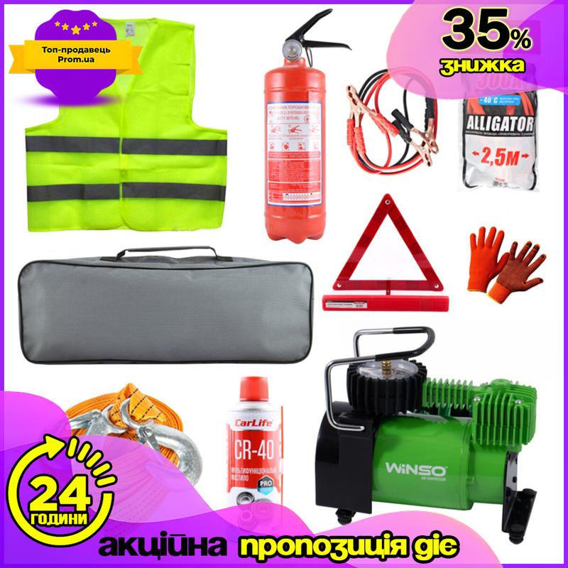 ## Автомобільний набір з компресором та автостопом для безпечної поїздки KU-22 Набір складається: Компресор автомобільний Winso з автостопом 124000 Провода- прикурювачі Alligator 300A, 2,5м BC634 Буксирувальний трос Carlife 4,5т, 5м TR705 Знак аварійної зупинки Вогнегасник порошковий ВП2 VP2-X 2кг Жилет сигнальний Beltex, розмір XXL 19100 Змазка багатофункціональна CarLife CR-40 Multifunctional Lubricant, 450мл CF452 Рукавиці покриті латексом WG09 Cумка органайзер велика Розмір (ШхВхГ): 58 х 18 х 13 см Колір сумки може змінюватись, уточнюйте наявність у менеджера Встигніть замовити, кількість штук за акцією обмежена! Остерігайтеся підробок і низькоякісного товару, його зараз дуже багато представлено під видом opигiнaлy! Ми пропонуємо найвищу добротну якість товару на ринку України, який виконує свою функцію та від якого ви отримуватиме тільки приємні емоції. Чому купують саме у нас? Відгуки та рекомендації реальних клієнтів Наш магазин має численні позитивні відгуки від задоволених клієнтів. Ви можете ознайомитися з їхнім досвідом і рекомендаціями в описі нижче та на нашому сайті, що допоможе вам зробити обґрунтований вибір. Прозорість і чесність Ми ведемо відкриту і чесну політику у відносинах з клієнтами і завжди йдемо на зустріч. Усі характеристики товарів, умови гарантії та обміну чітко вказані на нашому сайті, що дозволяє уникнути непорозумінь та забезпечує довіру клієнтів. Легка система повернення товарів Ми розуміємо, що іноді товар може не підійти Вам по тим чи іншим причинам. Тому ми пропонуємо гнучку та прозору систему повернення товарів, що забезпечує вам спокій і впевненість у вашій покупці. Високий рівень обслуговування клієнтів, 10 років досвіду Наші фахівці завжди готові надати професійну консультацію та допомогу у виборі товару. Ми цінуємо кожного клієнта і прагнемо зробити процес покупки максимально комфортним і приємним. Швидка доставка та зручні умови оплати Ми пропонуємо швидку та надійну доставку по всій країні, а також різноманітні способи оплати, включаючи готівковий і безготівковий розрахунок. Наші клієнти можуть обрати найзручніший для себе спосіб отримання товару. ✅ Весь товар перевіряється на наявність браку перед відправленням ✅ Відгуки наших клієнтів Поквапся, товару за акцією залишилося всього 3шт! ✅ З турботою про кожного клієнта ✅ ДОСТАВКА ПО всій УКРАЇНІ: Ми якісно та надійно пакуємо всі наші посилки, за збереження вмісту можете не турбуватися. Але все ж просимо перевіряти посилку на предмет пошкоджень безпосередньо у відділенні служби доставки, і в разі виявлення пошкоджень складати відповідний акт із працівником служби доставки. Без акту про пошкодження претензії не приймаються. Це рідкісні випадки, але під час пересилення тендітних предметів іноді відбуваються. Тому, щоб уникнути недомислень, просимо перевіряти вміст посилки під час отримання. Вдалих Вам покупок.