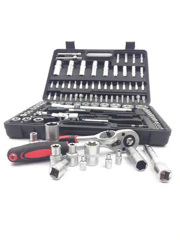 Набір інструментів Rupez RTS-108 1/2" & 1/4" містить у собі найпотрібніші елементи для ремонту автомобіля у своєму гаражі, а також під час виконання будь-яких робіт у будинку, не замінний у роботі із сантехнікою, мото-, велотехнікою. У комплекті 108 одиниць: воротки, ключі, тріскачки, різноманітні головки, подовжувачі, що дають змогу працювати з будь-яким різновидом кріплень! До цього набору ми ще додали головки Е-типу («Ялинки», TORX, «зірочки») для відкручування деталей ходової та двигуна, а також вузькоспеціалізованих з'єднань. Комплектація - Тріскачкова ручка 1/2" 72зуба, реверсійна з двокомпонентним покриттям; - Головка шестигранная торцевая 1/2" 17 шт.: 10, 11, 12, 13, 14, 15, 16, 17, 18, 19, 20, 21, 22, 24, 27, 30, 32 мм; - Головка шестигранна подовжена 1/2" 5 шт.: 14, 15, 17, 19, 22 мм; - Головка торцевая TORX (звезда) 1/2" 8 шт.: Е10, Е11, Е12, Е14, Е16, Е18, Е20, Е24; - Подовжувач 1/2" 125 мм; - Вороток із плавальною головкою 1/2" 250 мм; - Головка свічкова 1/2" 2 шт.: 16 мм і 21 мм; - Кардан 1/2". - Перехідник 1/2" під біти; - Тримач 1/4" для головок і біт 150 мм. Біти: - HEX 5 шт.: 7, 8, 10, 12, 14 мм; - TORX 5 шт.: T40, T45, T50, T55, T60; - PH 2 шт.: PH3, PH4; - PZ 2 шт.: PZ3, PZ4 - SL 3 шт.: 8, 10, 12 мм. - Головка з насадкою HEX 1/4" 4 шт.: 3, 4, 5, 6 мм; - Головка с насадкой TORX 1/4" 7 шт.: T8, T10, T15, T20, T25, T27, T30; - Головка зі шліцьовою насадкою SL 1/4" 3 шт.: 4, 5.5, 6.5 мм; - Головка з насадкою PH 1/4" 2 шт.: PH1, PH2; - Головка з насадкою PZ 1/4" 2 шт.: PZ1, PZ2. - Тріскачкова ручка 1/4" 72зуби, реверсійна з двокомпонентним покриттям; - Головка шестигранна торцева 1/4" 13 шт.: 4, 4.5, 5, 5.5, 6, 7, 8, 9, 10, 11, 12, 13, 14 мм; - Головка шестигранна подовжена 1/4" 8 шт.: 6, 7, 8, 9, 10, 11, 12, 13 мм; - Головка торцева TORX (зірка) 1/4" 5 шт.: Е4, Е5, Е6, Е7, Е8; - подовжувач 1/4" 2 шт.: 50, 75 мм; - Вороток 1/4" з плавальною головкою 110 мм; - Кардан 1/4"; - Г-подібні шестигранні ключі 3 шт.: 1.5, 2, 2.5 мм.