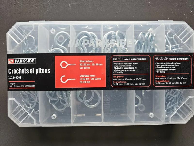 Набір гачків і шурупів parkside (151 шт, металеві, оцинковані, у кейсі)