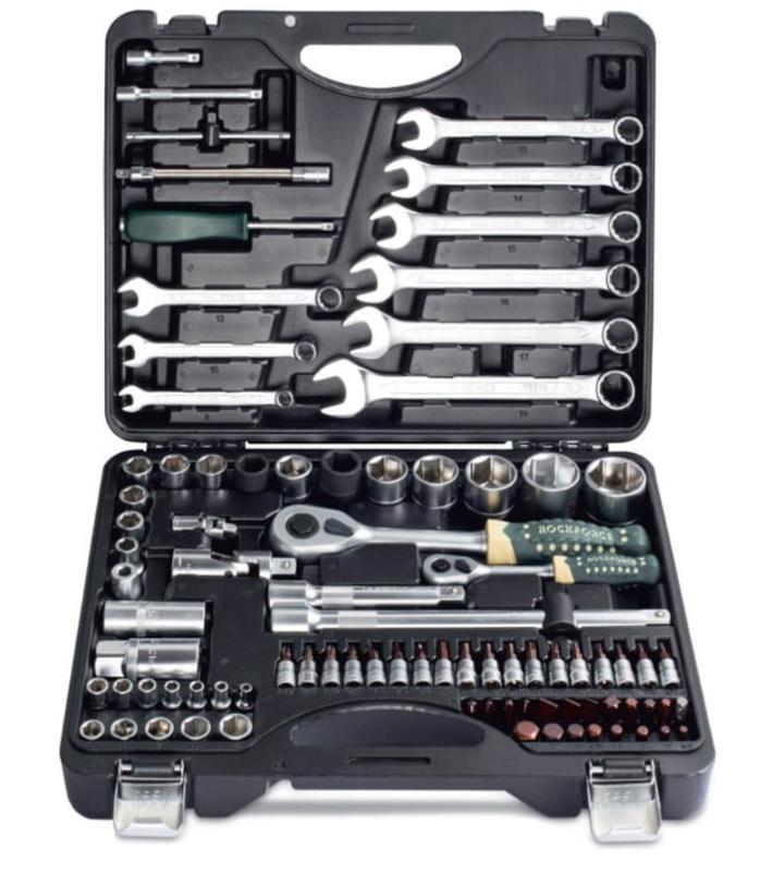 Набор инструментов Rockforce RF-4821-5-PREMIUM (1/2" & 1/4", 6-гранный, 82+6 предметов): Премиальное качество для любой задачи Представляем набор инструментов Rockforce RF-4821-5-PREMIUM – усовершенствованную версию, включающую 82 основных предмета плюс 6 дополнительных, самых популярных типоразмеров бит и головок. Этот набор, оснащенный присоединительными квадратами 1/2" и 1/4" с 6-гранным профилем, станет незаменимым помощником для любого профессионала и требовательного автолюбителя. Все инструменты изготовлены из высококачественной легированной Cr-V стали марки 50BV30, что придает им особую прочность и значительно улучшает механические свойства. Биты и биты-вставки выполнены из легированной стали S2, что обеспечивает их исключительную износостойкость. На инструменты нанесено защитное покрытие "матовый хром", обеспечивающее устойчивость к коррозии.Преимущества набора Rockforce RF-4821-5-PREMIUM: Исключительная прочность: Инструменты выдерживают высокие нагрузки благодаря использованию закаленной стали CrV и легированной стали S2 для бит. Долговечность: Защитное покрытие "матовый хром" и прочность материалов гарантируют долгий срок службы даже при интенсивном использовании. Комфорт в труднодоступных местах: Входящие в набор ключи-трещотки с 72 зубьями обеспечивают рабочий шаг всего 5°, что позволяет эффективно работать в ограниченном пространстве. Быстрая смена задач: Все трещотки оснащены функцией быстрого сброса и металлическим переключателем реверса для оперативного перехода между операциями. Организованное хранение и транспортировка: Набор поставляется в ударопрочном пластиковом кейсе с металлическими замками. Элементы надежно зафиксированы в ложементе, что исключает их потерю и обеспечивает удобный поиск нужного инструмента. Эргономичное расположение: Продуманная система хранения обеспечивает быстрый доступ к каждому инструменту, оптимизируя рабочий процесс. Комплектация: Комплект 1/4": Головки 6-гранные: 4, 5, 5.5, 6, 7, 8, 9, 10, 11, 12, 13, 14 мм (13 шт) Биты-насадки (32 мм): 6-гр.: 3, 4, 5, 6 мм Torx: T8, T10, T15, T20, T25, T30, Т40 Шлицевые: 4, 5.5, 7 мм Phillips: PH.1, PH.2 Pozidriv: PZ.1, PZ.2 (всего 17 шт) Биты Spline 5/16": М8, М10, М12, М14 Трещотка Вороток Т-образный Удлинитель: 50, 100 мм Кардан Удлинитель гибкий Вороток-отвертка Бит-адаптер 25мм Комплект 1/2": Головки 6-гранные: 10, 12, 13, 14, 15, 16, 18, 22, 24, 27, 30, 32 мм (12 шт) Головки 6-гранные глубокие (77 мм): 17, 19 (2 шт) 5/16" Биты (30 мм): 6-гр.: 8, 10, 12, 14 мм Torx: T40, T45, T50, T55 Шлицевые: 8, 10, 12 мм Phillips: PH.3, PH.4 Pozidriv: PZ.3, PZ.4 (всего 15 шт) Трещотка Кардан Удлинитель: 125, 250 мм Головка свечная: 16, 20.6 мм (2 шт) Держатель биты 1/2" x5/16" Адаптер с отверстием 3/8"(F)x1/2"(M) Ключи комбинированные: 8, 10, 12, 13, 14, 15, 16, 17, 19 мм (7 шт) Кейс Набор инструментов Rockforce RF-4821-5-PREMIUM – это комплексное решение, которое обеспечит вас всем необходимым для эффективной и комфортной работы с крепежом любой сложности.