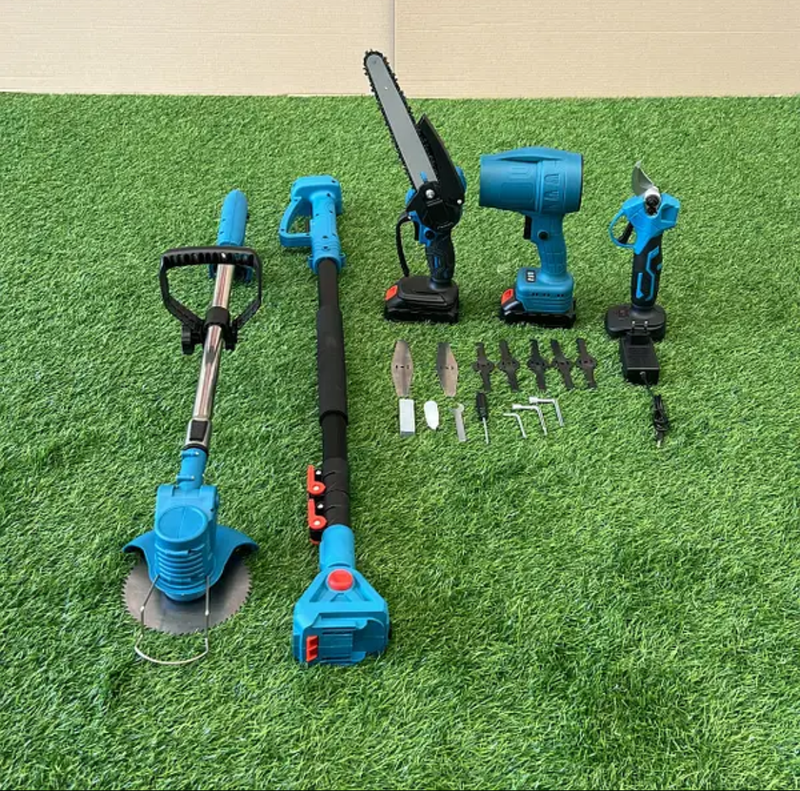 Акумуляторний садовий набір 5в1 (секатор, міні-пила, триммер, повітродувка, штанга телеско...