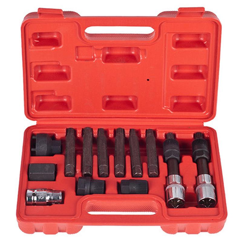 Набор для разборки генератора, 14 предм. Alloid НГ-2002 относится к группе специализированного инструмента Alloid для сферы профессионального ремонта автомобилей. Инструмент из набора Alloid НГ-2002 позволяет зафиксировать шкив при его снятии с генератора, что упрощает и ускоряет процесс ремонта автомобиля. Также в состав набора Alloid входит инструмент для разборки и сборки генераторов. Комплектация: - M10 Spline x 1/2"D, T50 Star x 1/2" D для генераторов Bosch - Шестиграники Hex: 10mm | 8mm, Spline: M8 | M10 и Star: T40 | T50. - 1/2"D to Hex адаптер, 4 дополнительных адаптера Набор для разборки генератора, 14 предм. Alloid НГ-2002 можно приобрести в нашем интернет-магазине