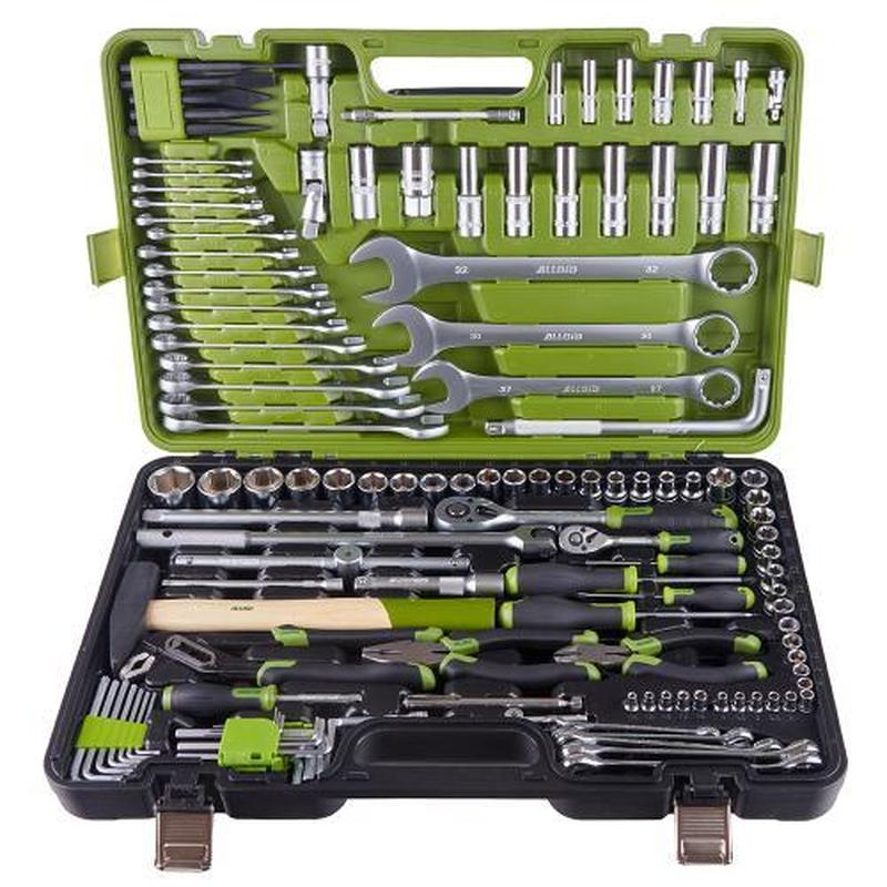 ### Універсальний набір інструментів Alloid 1/4" & 1/2", 127 одиниць (NI-4127P) Набір інструментів Alloid NI-4127P — це універсальний комплект на 127 предметів із посадочними розмірами 1/4" та 1/2", призначений для широкого спектра робіт: від дрібного ремонту до професійного обслуговування авто. Ударостійкий кейс містить тріскачки з реверсом, ключі, торцеві головки, викрутки, бітотримач, шестигранники, пасатижі, молоток та інші необхідні інструменти. Усі деталі виготовлені з хром-ванадієвої сталі. Застосування: • Побутовий ремонт • Обслуговування автомобіля • Робота на СТО • Монтажні та електротехнічні роботи • Складання меблів • Гараж, майстерня, дача Набір містить усе необхідне для повноцінного ремонту: від силових інструментів до прецизійної роботи з бітами та головками. Ергономічні рукоятки тріскачок забезпечують надійне захоплення, а кейс фіксує кожну деталь для зручного транспортування. Інструменти витримують великі навантаження та підходять для щоденного використання. Склад набору: - Тріскачки 1/2" та 1/4" з перемикачем напряму - Комбіновані ключі (включаючи великі до 22 мм) - Торцеві головки (короткі та подовжені) - Свічкові головки - Подовжувачі, карданні з’єднання - Викрутки, біти, перехідники - Молоток, кусачки, ножі, шестигранники - Осередки для дрібних деталей або витратників - Міцний кейс із засувками та фіксаторами Набір вирізняється компактністю та продуманим зберіганням — усі інструменти надійно закріплені в легкому чемодані з ударостійкого пластику. Завдяки ергономічній ручці кейс зручно носити, а фіксатори-засувки надійно утримують кришку під час транспортування. Ідеальний варіант для зберігання вдома, у гаражі чи в автомобілі.