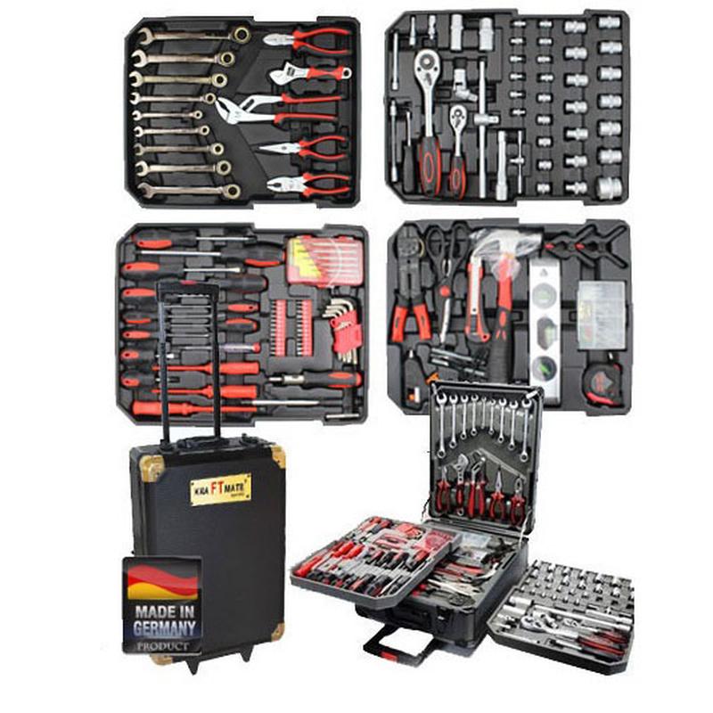Представляємо Вашій увазі чудову модель інструментів від торгової марки Rainberg. Всі інструменти упаковані у велику валізу на коліщатках, що сприяє його швидкому пересування. Усі прилади розміщені у чотирьох різних відділеннях, це дає можливість правильно зберігати їх після відкриття. У наборі – 399 предметів, виконаних їх сплавом хром-ваннадіум.У валізі на колесах, з висувною ручкою Ви побачите: висувний ніж 155 мм, молоток із гвоздодером 340 гр., рулетка, 5 м, алюмінієвий рівень 250 мм; комплект кріплення 60 предметів магнітна вказівка; ізоляційна стрічка; тонкогубці 200 мм., бокорізи 180 мм; пасатижі переставні 155 мм; кліщі переставні 250 мм; затискач з фіксатором 180 мм; інструмент для зняття ізоляції з проводів 200 мм; 3 викрутки діелектричні SL 4×100, 5.5×125, PH 1X100; ключі 8, 9, 10, 11, 12, 13, 14, 15, 16, 17, 18 і 19 мм і т.д. Такий набір неодмінно оцінить справжній чоловік. Він підходить як для професійного, так і для домашнього використання. Може стати чудовим подарунком.