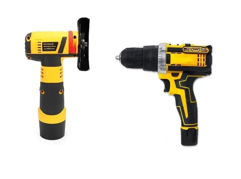 Набір акумуляторного інструменту мініболгарка + шуруповерт 12v (2 акб) жовтий