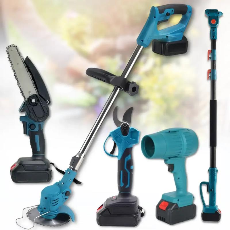 Аккумуляторный набор садовых инструментов 6в1 + АКБ 48В / Набор для сада Триммер / Секатор / Пила / Воздуходуйка / Удлинитель Всё для вашего сада в одном наборе! Достоинства: Многофункциональность: один комплект заменяет пять инструментов Экономия места: компактное хранение всех инструментов Удобство использования: легкое изменение насадок Высокая производительность: мощные и эффективные инструменты Долговечность: качественные материалы и надежная сборка. Описание: Универсальный садовый комплект 6 в 1 - это незаменимый помощник для каждого садовода. Включая секатор, цепную пилу с длиной шины 6 дюймов, воздуходувку, триммер и высоторез, этот набор позволяет выполнять широкий спектр задач по уходу за садом. Все инструменты изготовлены из высококачественных материалов, обеспечивающих долговечность и надежность использования. Эргономичный дизайн каждого элемента гарантирует комфортную работу и минимальную усталость, даже при длительном использовании. Секатор идеально подходит для обрезки веток и зарослей, обеспечивая чистый и точный срез. Цепная пилка с 6-дюймовой шиной легко справляется с более толстыми ветвями и небольшими деревьями. Воздуходувка поможет быстро очистить участок от листьев и мусора, а триммер обеспечит аккуратный вид газона. Высоторез позволяет безопасно обрезать высокие ветви, не прибегая к лестнице. Этот комплект станет отличным выбором для тех, кто ценит качество и функциональность в садовом инвентаре. Характеристики: Цепная пила: Тип: Бытовая, предназначенная для легких и средних домашних работ Двигатель: Щеточный Длина шины: 15 см Шаг цепи: 1/4" Скорость цепи: 12 м/сек Натяжка цепи: Ключевая, удобная и быстрая регулировка без лишних усилий Вес: 1,2 кг Антивибрационная система: Уменьшает усталость рук при длительной работе Секатор: Двигатель: Бесщеточный Тип ножа: Односторонний, обеспечивает ровный и аккуратный срез. Толщина реза: до 25 мм. Вес: 1 кг Материал корпуса: Прочный ABS-пластик Безопасный замок: Предотвращает случайное включение в нерабочем положении Защита от перегрева: Автоматическое отключение при перегрузке Воздуходув: Тип: Беспроводной, ручной Материал: ударопрочный ABS-пластик Скорость потока: до 322 км/ч Двигатель: Безщеточный, тихий и энергоэффективный Вес: 1 кг Эргономичная ручка: Для комфортного хвата и управления Режимы скорости: Несколько уровней мощности для экономии энергии и адаптации под разные задачи Время зарядки: 2-3 часа Низкий уровень шума: Позволяет работать без сильного дискомфорта Триммер: Тип: Газонокосилка с ножом - эффективное решение для скашивания травы и мелких кустарников. Напряжение: 48 В Аккумулятор: 5 Ач (Li-Ion) Вращения: до 10 000 об/мин Ширина скашивания: 150 мм Рукоятка: D-образная, удобная для точного управления и комфортной работы Время зарядки: 1,5 часа Вес: 1,4 кг Телескопическая штанга: Максимальная длина: 2 м Материал: Легкий и крепкий пластик, устойчивый к атмосферным воздействиям. Возвратный механизм: Отсутствует Фиксация длины: Надежный замок для безопасной работы на выбранной высоте Устойчивость к коррозии: Материал не ржавеет и сохраняет внешний вид Комплектация: Цепная пила 6" Секатор Воздуродувка Триммер / Газонокосилка Телескопическая штанга Аккумулятор 48В Упаковка