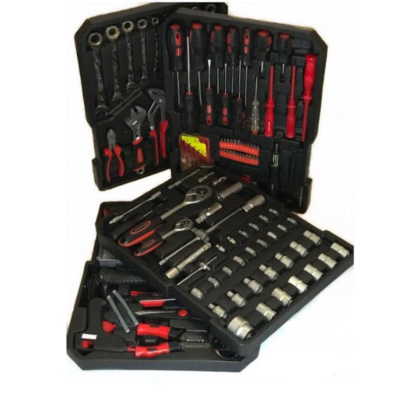 Представляємо Вашій увазі чудову модель інструментів від торгової марки Rainberg. Всі інструменти упаковані у велику валізу на коліщатках, що сприяє його швидкому пересування. Усі прилади розміщені у чотирьох різних відділеннях, це дає можливість правильно зберігати їх після відкриття. У наборі – 399 предметів, виконаних їх сплавом хром-ваннадіум. У валізі на колесах, з висувною ручкою Ви побачите: - висувний ніж 155 мм, - молоток із гвоздодером 340 гр., - рулетка, 5 м, - алюмінієвий рівень 250 мм; - комплект кріплення 60 предметів - магнітна вказівка; - ізоляційна стрічка; - тонкогубці 200 мм., - бокорізи 180 мм; - пасатижі переставні 155 мм; - кліщі переставні 250 мм; - затискач з фіксатором 180 мм; - інструмент для зняття ізоляції з проводів 200 мм; - 3 викрутки діелектричні SL 4×100, 5.5×125, PH 1X100; - ключі 8, 9, 10, 11, 12, 13, 14, 15, 16, 17, 18 і 19 мм і т.д. Такий набір неодмінно оцінить справжній чоловік. Він підходить як для професійного, так і для домашнього використання. Може стати чудовим подарунком.