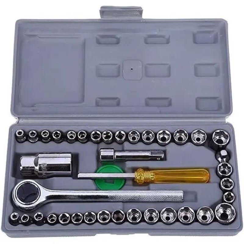 Набір інструментів aiwa 40 предметів, тріскачка, торцеві головки, кейс для дому та авто