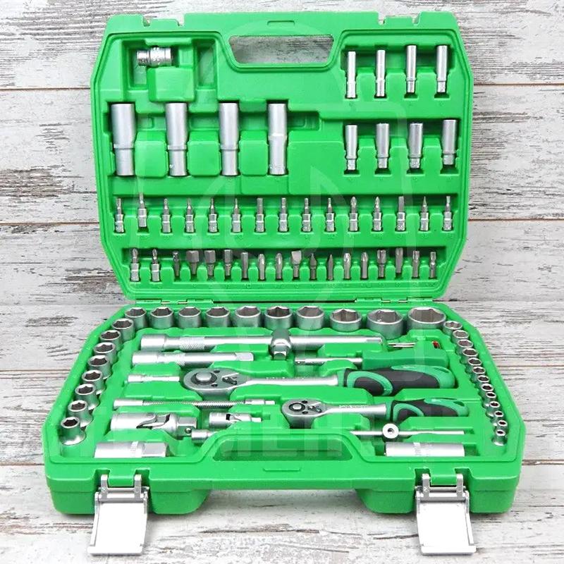 Професійної якості набір інструментів 94ед, NST Набір для тих, хто бажає придбати інструмент для ремонту по дому або нечастих робіт у гаражі. Придатні для починання меблів, сантехніки та різних приладів. Найголовніша відмінність цієї лінійки від інших — це оптимальна ціна. Інструменти виготовлені з надійної та міцної інструментальної сталі. Застосовувати надмірно великі зусилля до кріплень не рекомендується, тому що набори призначені для не професійних, профілактичних робіт. Інструмент на будь-який випадок Набір містить 94 елементи для виконання будь-якого завдання на відкручування, закручування кріплень. Для різних видів і діаметрів кріплень є цілий арсенал шестигранних торцевих головок від 4 до 32 мм. Наявність карданів і подовжених головок розв'язує питання довгих шпильок і гвинтів. Можна викрутити кріплення в глибоких колодязях двигунів і у важкодоступних місцях, де звичайна головка не зможе впоратися. Т-подібні воротки з плавальною головкою дають додаткові зусилля на прикипілу гайку. У наборі також постачається перехідник під шурупокрут для головок із насадками, бітотримач і різні типи біт (HEX, TORX, PH, PZ, SL) для різних шліц болтів. Свічкові головки з гумовими вставками 16 і 21 мм будуть потрібні для зручного монтажу свічок запалювання. Зручні тріскачки У наборі дві тріскачки з посадковими квадратами 1/2" і 1/4", з реверсом, кнопкою для скидання та фіксації головок. Хроповик на 72 зубці забезпечує м'якість ходу та дає змогу працювати в умовах обмеженого простору. Прогумована двокомпонентна ручка надійно сидить у руці та не вислизає. DIY-серія Найголовніша відмінність цього набору від професійної та STORM серії — це його доступна ціна, матеріал виготовлення інструменту та кейса. Водночас функціонал залишається колишнім! Інструменти виготовлені із загартованої вуглецевої сталі, грані тверді та не стираються під час роботи. Компактне зберігання Кейс набору виробляється з шарнірними петлями та щільними засувками. Інструменти жорстко закріплені в посадкових місцях завдяки ущільненим коміркам — нічого більше не розсипається в роботі або під час ходьби. Компактний, він легко поміщається в багажнику або на стелажі. Комплектація * * * Тріскачкова ручка 1/2" 72 зуби, реверсійна з двокомпонентним покриттям; Головка шестигранная торцевая 1/2" 18 шт.: 10, 11, 12, 13, 14, 15, 16, 17, 18, 19, 20, 21, 22, 23, 24, 27, 30, 32 мм; Головка шестигранна подовжена 1/2" 4 шт.: 14, 15, 17, 19 мм; Головка свічкова 1/2" 2 шт.: 16 мм і 21 мм; Вороток із плавальною головкою 1/2" 250 мм; Кардан 1/2"; Подовжувач 1/2" 2 шт.: 125 мм, 250 мм; Перехідник під біти 1/2". Гнучкий подовжувач 1/4" 150 мм; Тримач 1/4" для головок і біт 150 мм; Перехідник під шурупокрут для головок 1/4" 30 мм. Біти: -HEX 4 шт.: 8, 10, 12, 14 мм; -TORX 4 шт.: T40, T45, T50, T55; -PH 2 шт.: PH3, PH4; -PZ 2 шт.: PZ3, PZ4; -SL 3 шт.: 8, 10, 12 мм. Головка з насадкою HEX 1/4" 4 шт.: 3, 4, 5, 6 мм; Головка з насадкою TORX 1/4" 6 шт.: T8, T10, T15, T20, T25, T30; Головка зі шліцьовою насадкою SL 1/4" 3 шт.: 4, 5.5, 7 мм; Головка з насадкою PH 1/4" 2 шт.: PH1, PH2; Головка з насадкою PZ 1/4" 2 шт.: PZ1, PZ2. Тріскачкова ручка 1/4" 72 зуби, реверсійна з двокомпонентним покриттям; Головка шестигранна торцева 1/4" 13 шт.: 4, 4.5, 5, 5.5, 6, 7, 8, 9, 10, 11, 12, 13, 14 мм; Головка шестигранна подовжена 1/4" 8 шт.: 6, 7, 8, 9, 10, 11, 12, 13 мм; подовжувач 1/4" 2 шт.: 50, 100 мм; Вороток 1/4" з плавальною головкою 110 мм; Кардан 1/4"; Г-подібні шестигранні ключі 3 шт.: 1.5, 2, 2.5 мм.